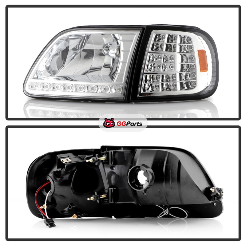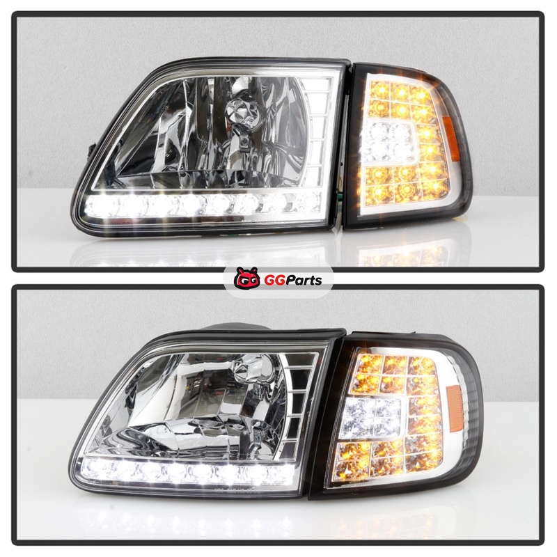 Xtune Ford F150 97-03 Crystal Headlights w/ Clear LED Corners Chrome HD-ON-FF15097-LED-SET-C