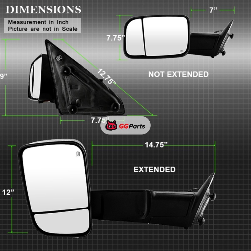 Xtune Dodge Ram 1500 09-12 Extendable Heated Adjust Mirror Black HoUSing Left MIR-DRAM09S-PWH-L