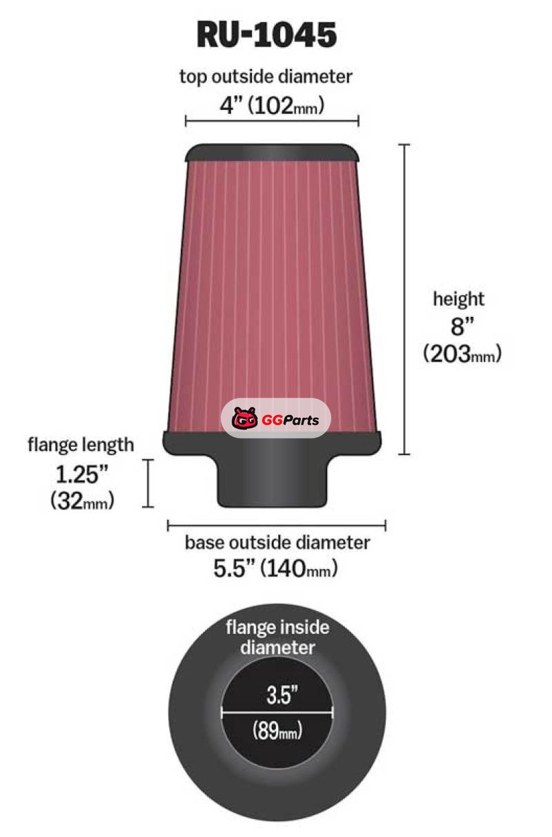 K&N Universal Tapered Filter 3.5in Flange ID x 5.5in Base OD x 4in Top OD x 8in Height