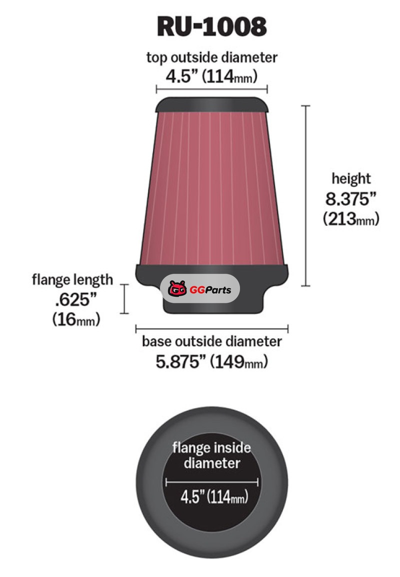K&N Universal Clamp-On Air Filter 4-1/2in FLG / 5-7/8in B / 4-1/2in T / 8-3/8in H