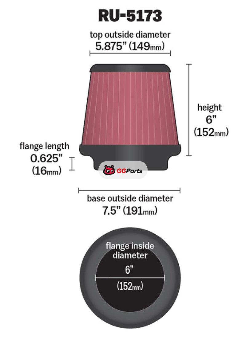 K&N Universal Clamp-On Air Filter 6in FLG / 7-1/2in B / 5-7/8in T / 6in H