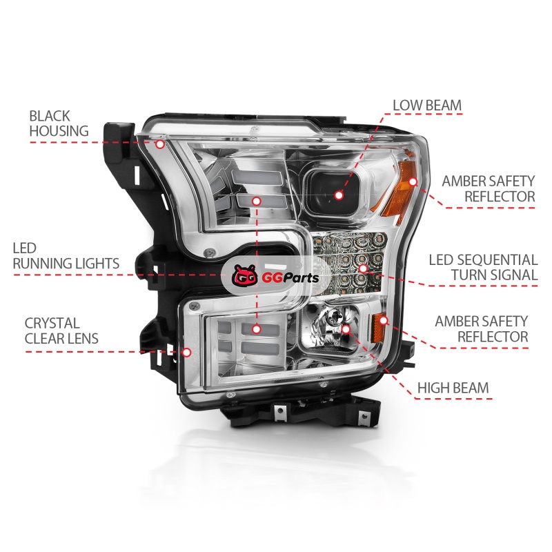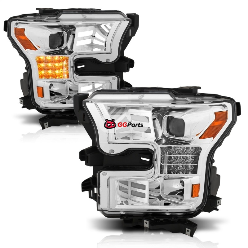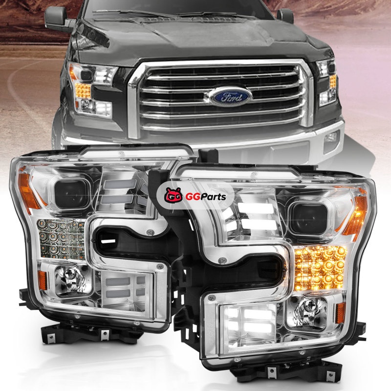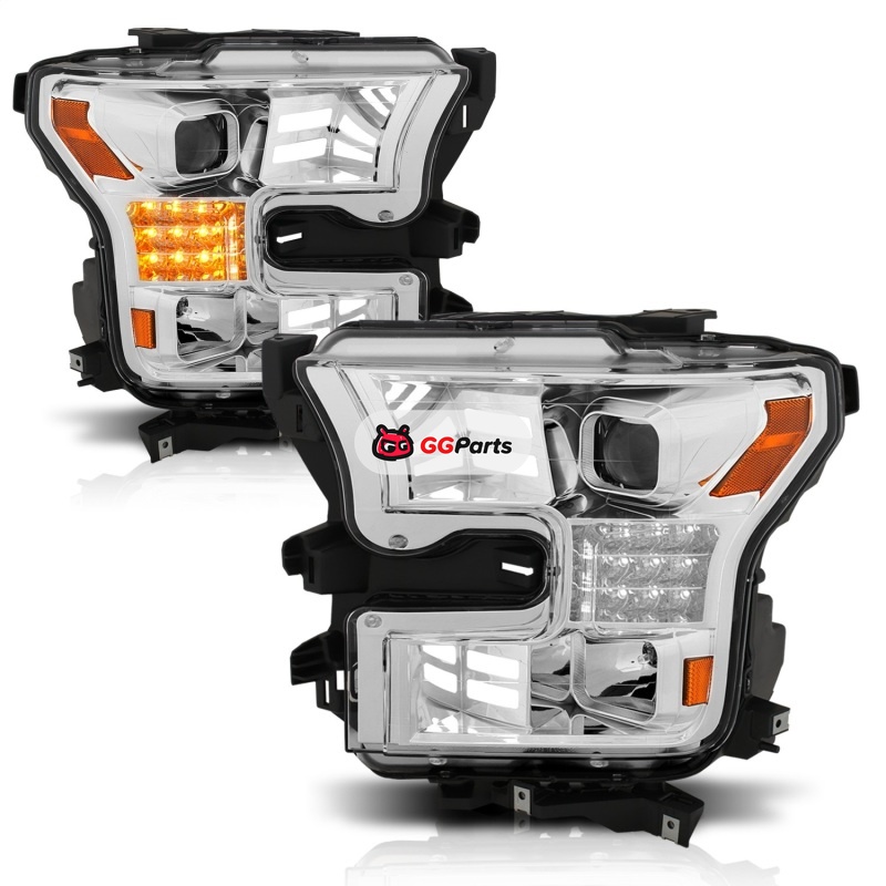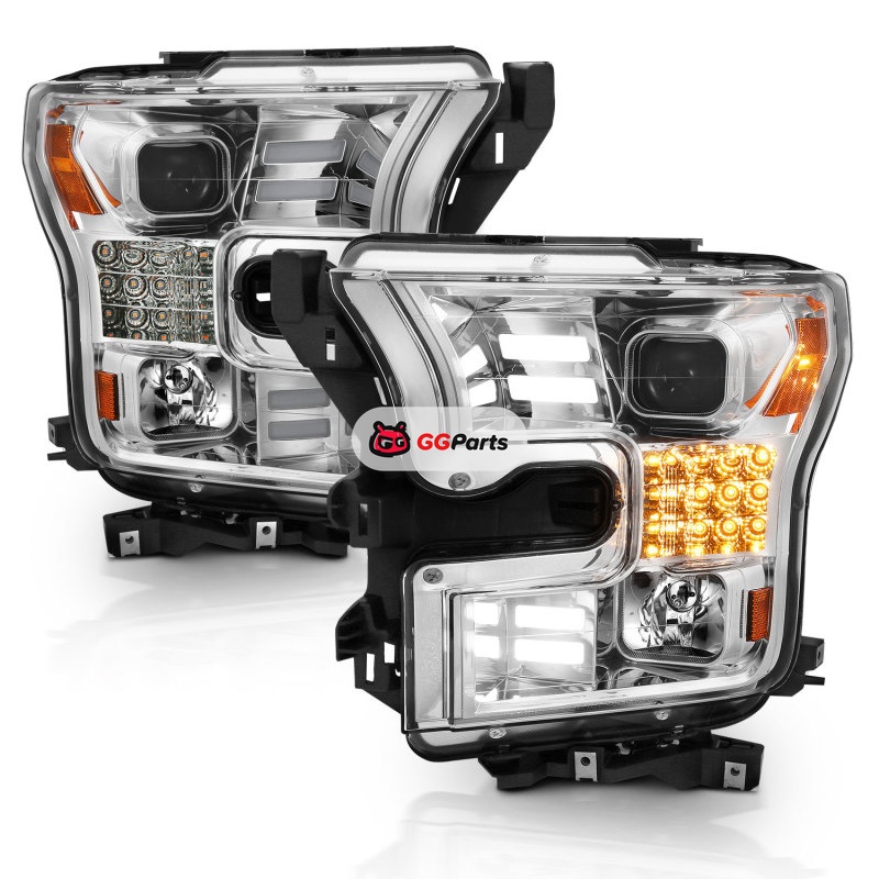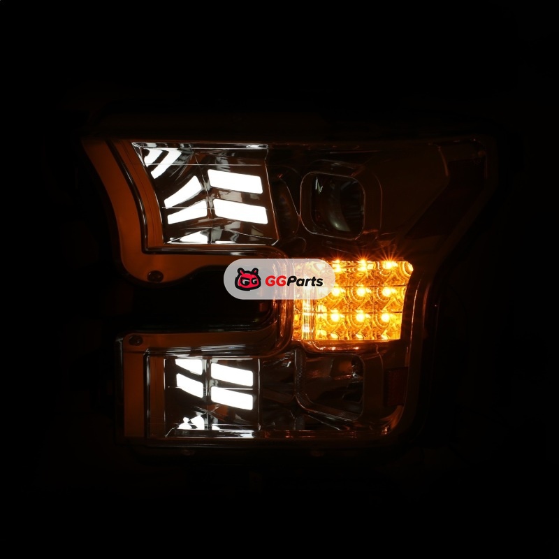 ANZO 15-17 Ford F-150 Proj Headlights w/ Plank Style Design Chrome w/ Amber Sequential Turn Signal