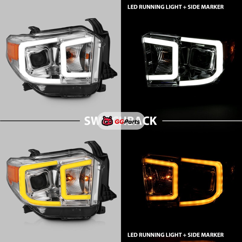 ANZO 14-17 Toyota Tundra Plank Style Projector Headlights Chrome w/ Amber