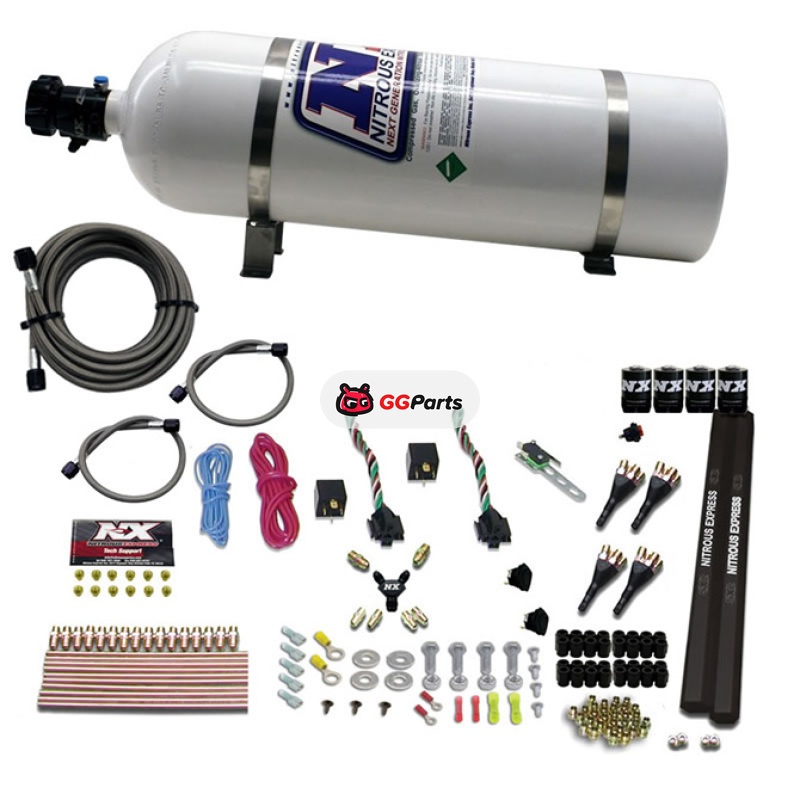 Nitrous Express 4 Cyl SX2 Nozzle Nitrous Kit (100-300HP x 2) w/15lb Bottle