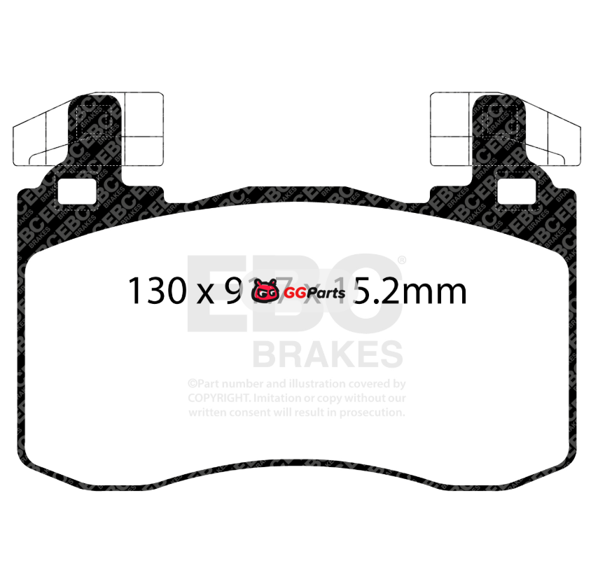 EBC Redstuff Комплект передних тормозных колодок (диск 350x30м) Genesis G70 2.0t/2.5t/3.3tt 2019-2026/KIA Stinger 3.3tt 2017-2023