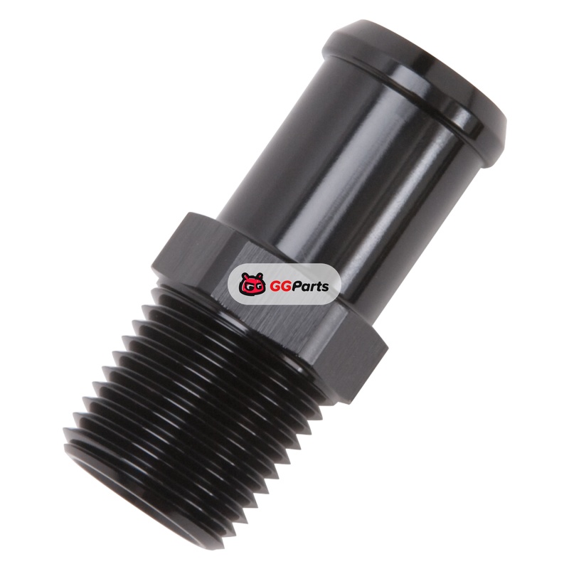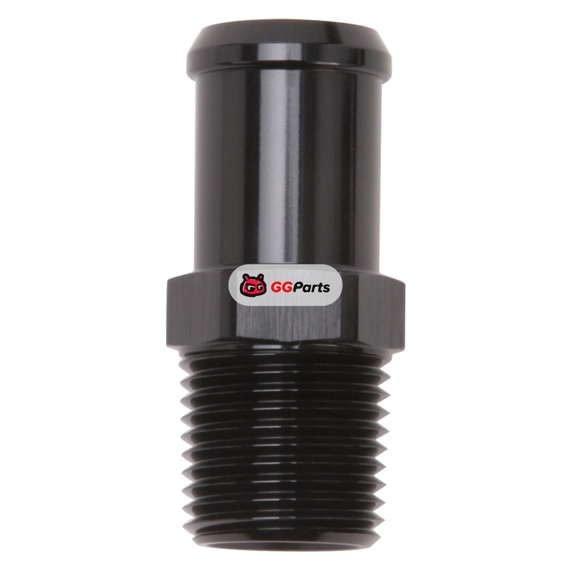 Edelbrock Hose End Straight 1/2In NPT to 3/4In Barb Black Anodize