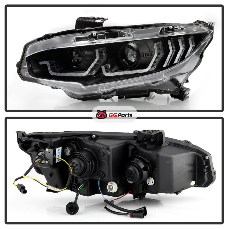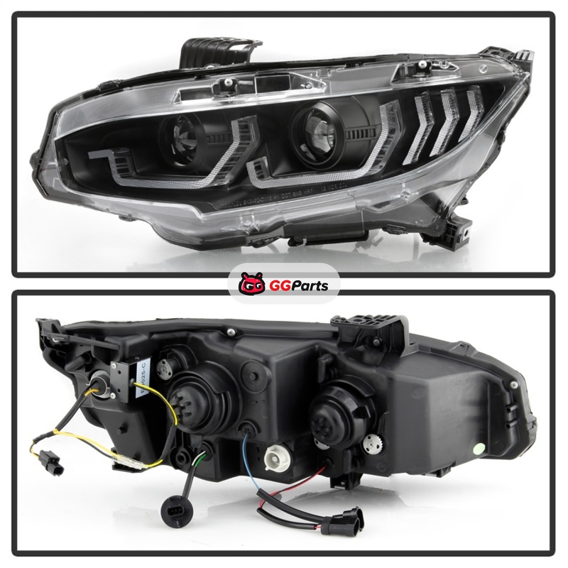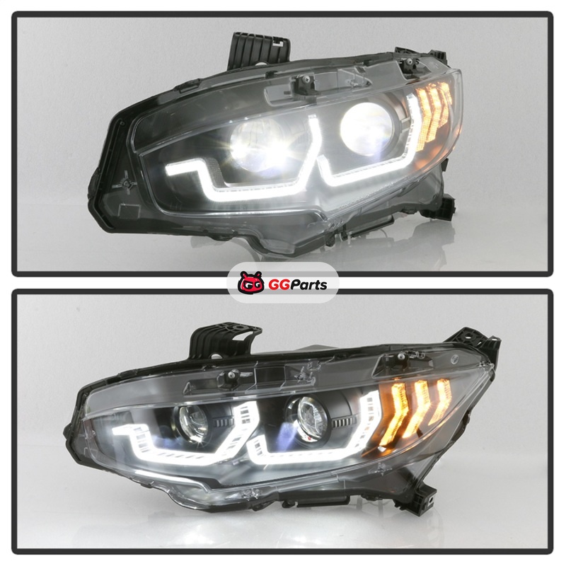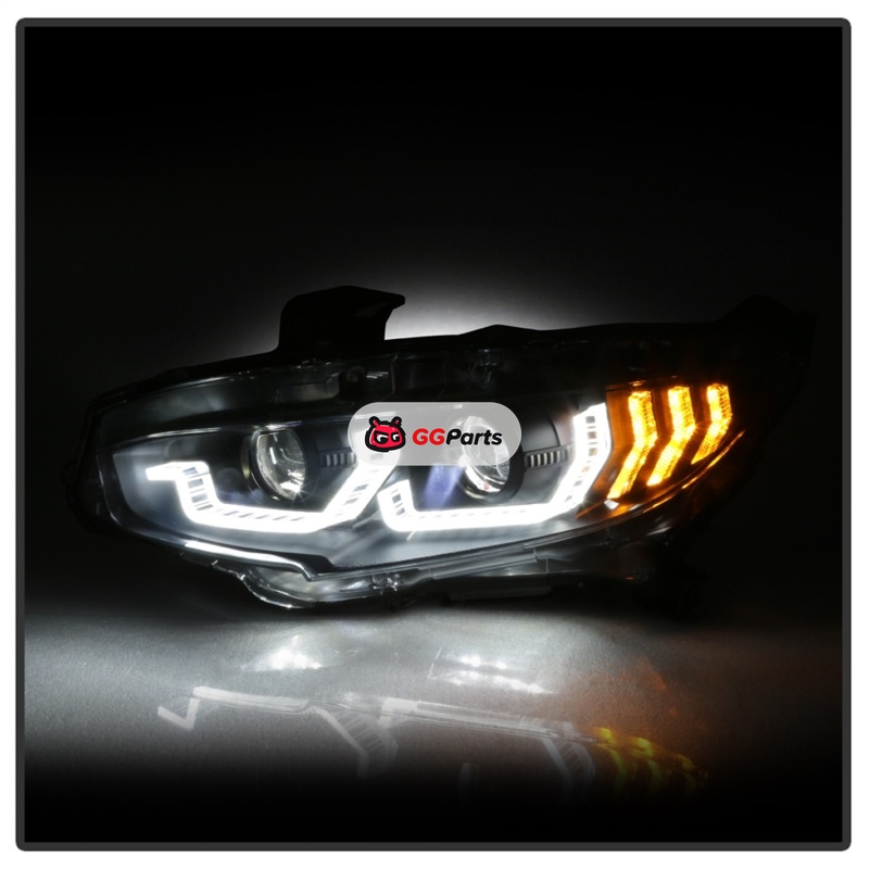 Spyder Honda Civic 16-18 2DR/4DR/Hatchback Headlight Black PRO-YD-HC16PL-SEQ-BK