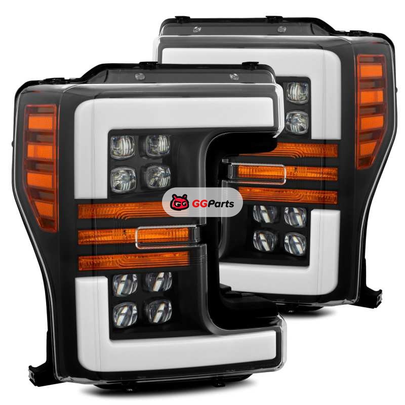 AlphaRex 17-19 Ford F-250 SD NOVA LED Proj Headlights Plank Style Matte Blk w/Activ Light/Seq Signal