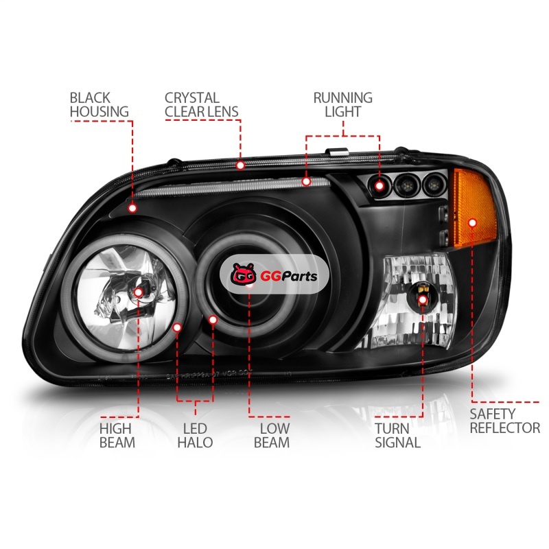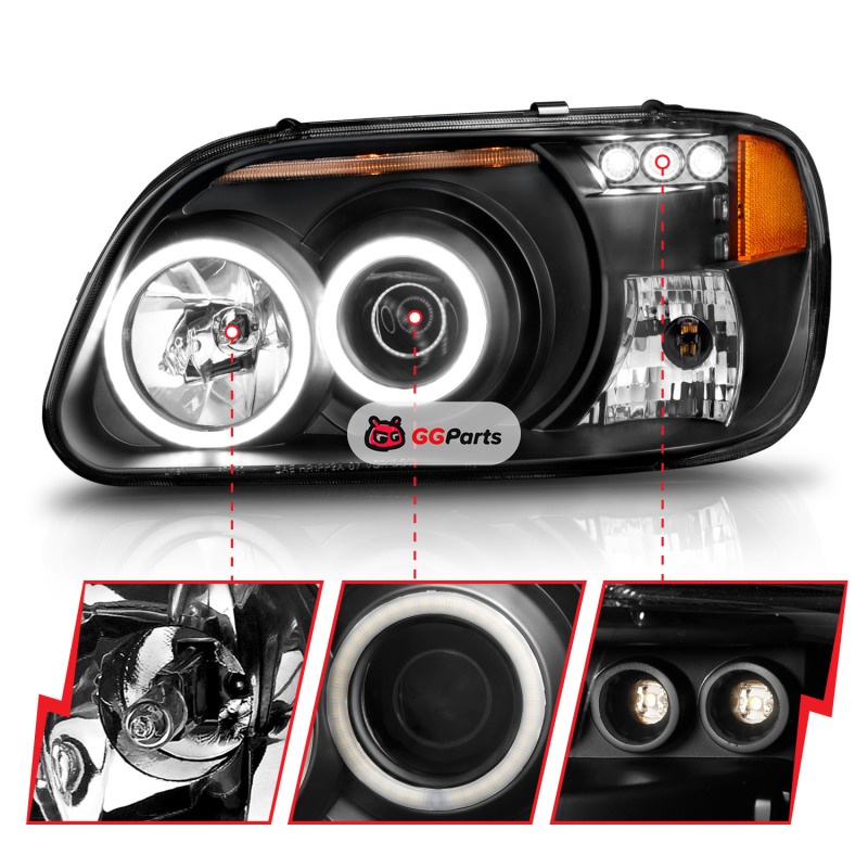 ANZO 1995-2001 Ford Explorer Projector Headlights w/ Halo Black 1 pc