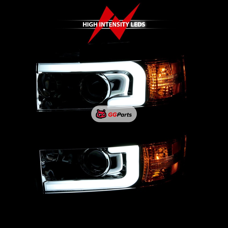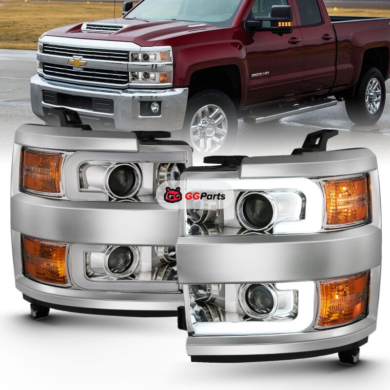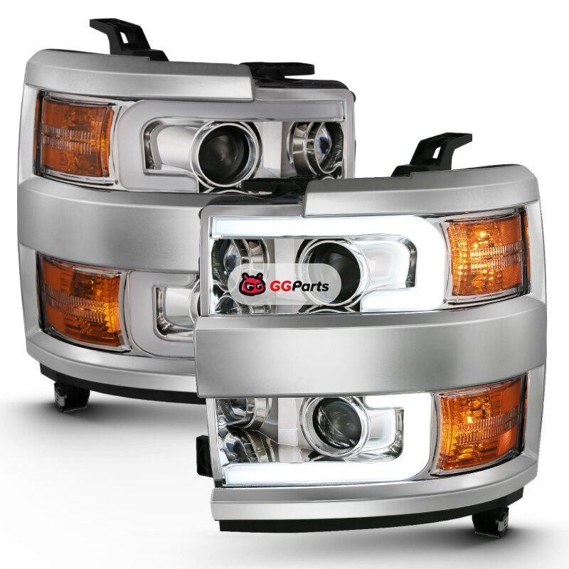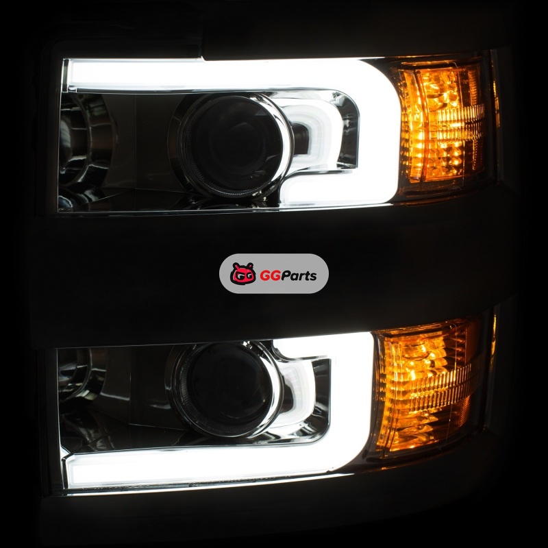 ANZO 2015-2016 Chevrolet Silverado Projector Headlights w/ Plank Style Design Chrome w/ Amber