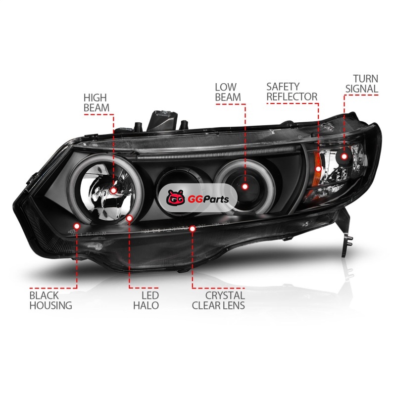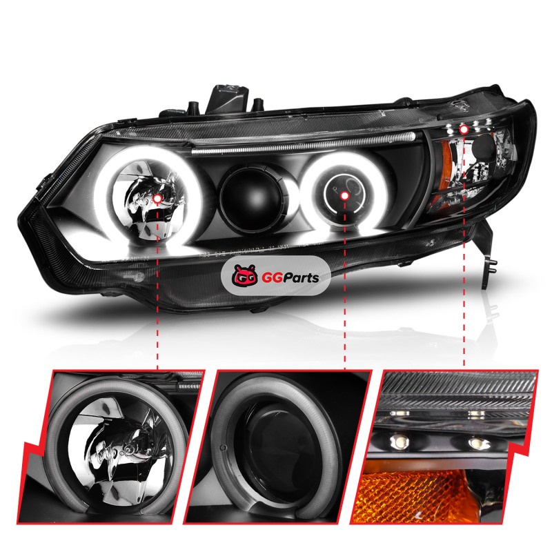 ANZO 2006-2011 Honda Civic Projector Headlights w/ Halo Black (CCFL)