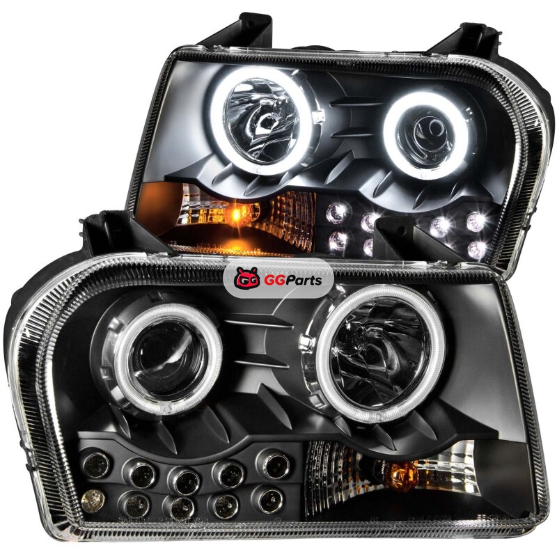 ANZO 2005-2010 Chrysler 300 Projector Headlights w/ Halo Black (Does Not Fit S Models)