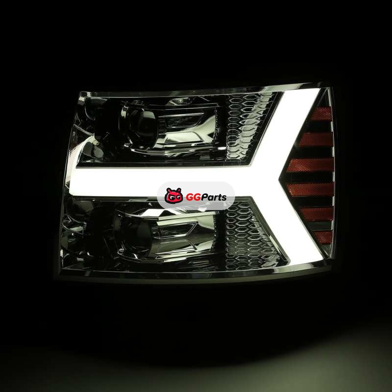 AlphaRex 07-13 Chevy 1500 LUXX LED Proj Headlights Plank Design Chrome w/ Activ Light/Seq Signal/DRL