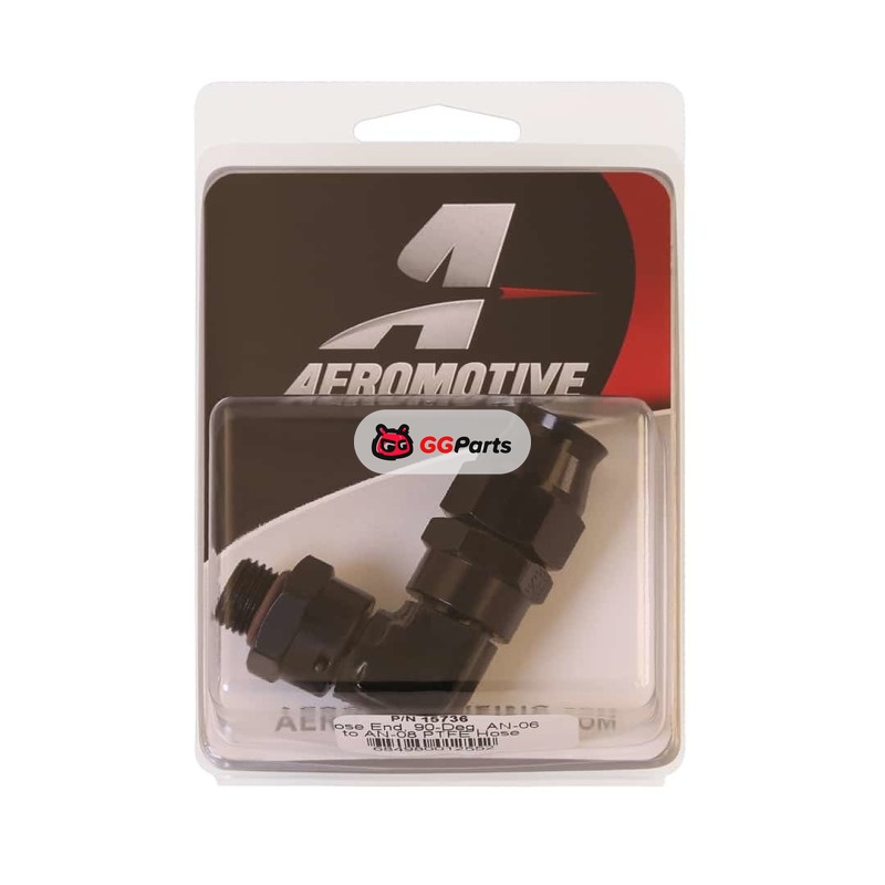 Aeromotive PTFE Hose End - AN-06 to AN-08 Hose - 90 Deg - Black Anodized