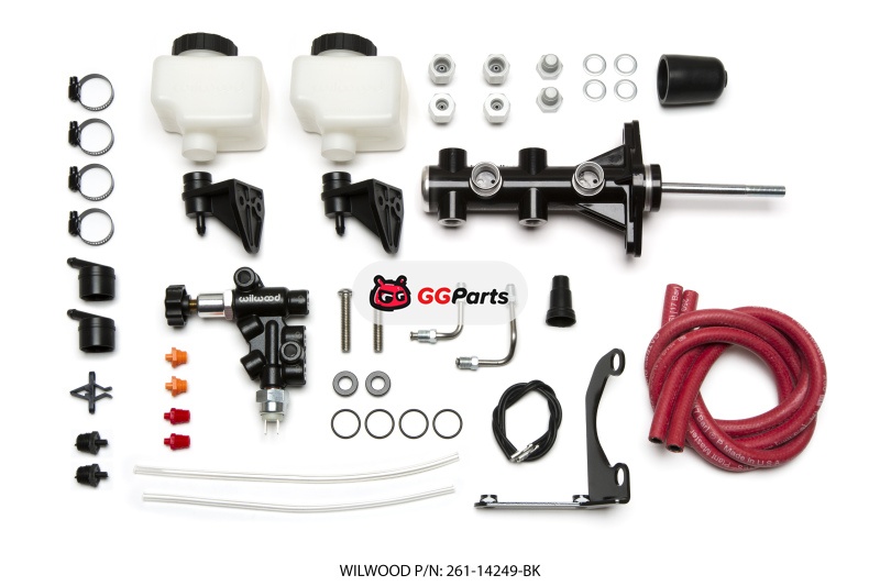Wilwood Tandem Remote M/C Kit w L/H Brkt & Prop Valve - 7/8in Bore Black-W/Pushrod