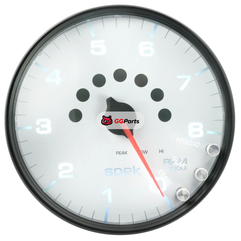 Autometer Spek-Pro Gauge Tachometer 5in 8K Rpm W/Shift Light & Peak Mem White/Black