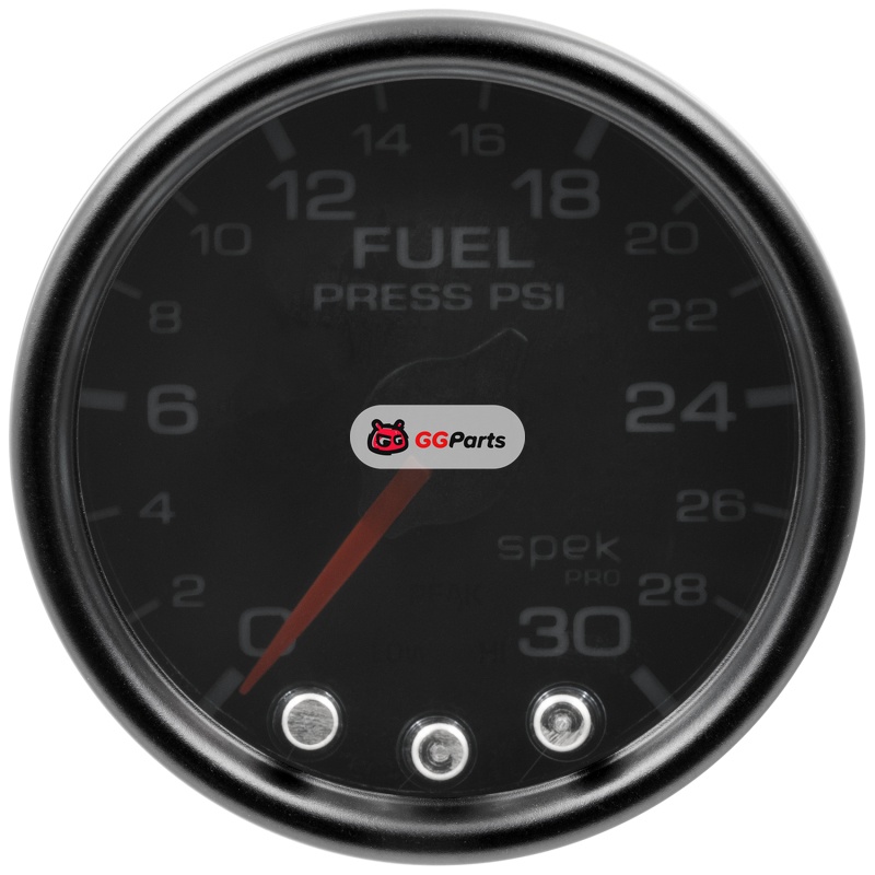 Autometer Spek-Pro Gauge Fuel Press 2 1/16in 30psi Stepper Motor W/Peak & Warn Blk/Smoke/Blk