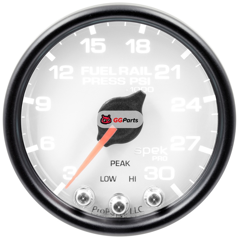 Autometer Spek-Pro Gauge Rail Press 2 1/16in 30Kpsi Stepper Motor W/Peak & Warn Wht/Blk