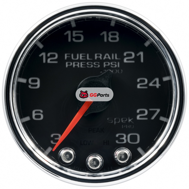 Autometer Spek-Pro Gauge Rail Press 2 1/16in 30Kpsi Stepper Motor W/Peak & Warn Blk/Chrm
