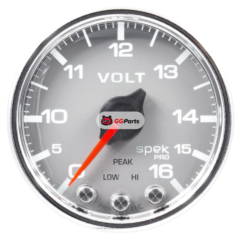 Autometer Spek-Pro Gauge Voltmeter 2 1/16in 16V Stepper Motor W/Peak & Warn Slvr/Chrm