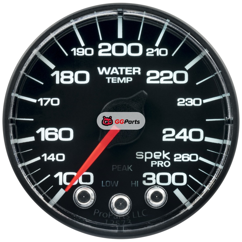 Autometer Spek-Pro Gauge Water Temp 2 1/16in 300f Stepper Motor W/Peak & Warn Blk/Blk