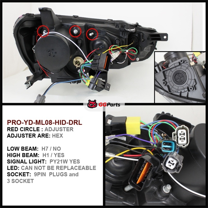 Spyder Mitsubishi Lancer/EVO-10 08-14 Projector Xenon/HID- LED Halo DRL Blk PRO-YD-ML08-HID-DRL-BK