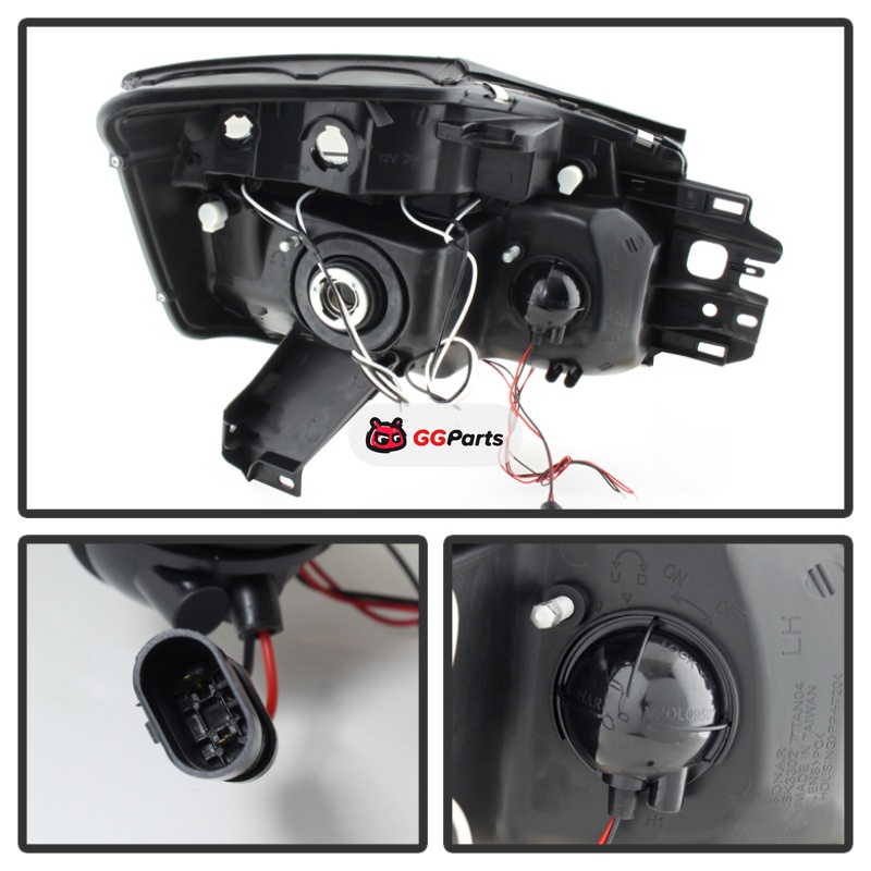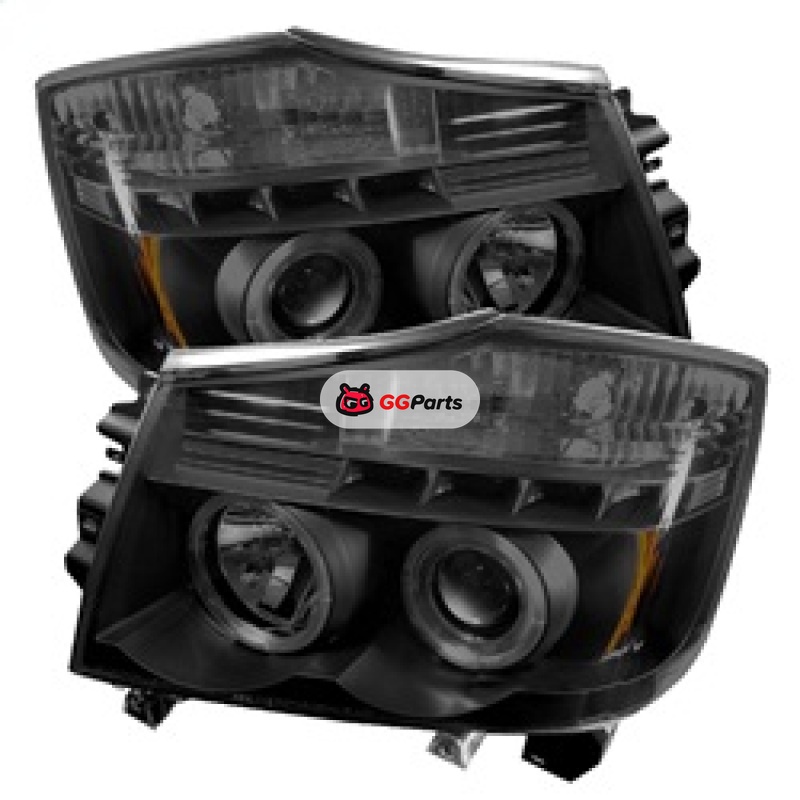 Spyder Nissan Titan 04-14 Projector Headlights LED Halo LED Blk Smke PRO-YD-NTI04-HL-BSM
