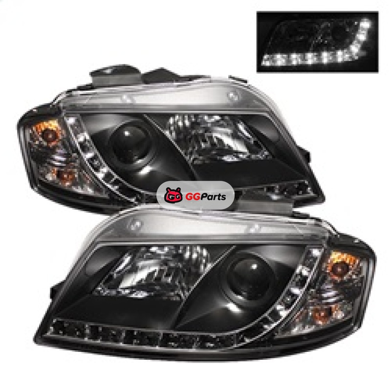 Spyder Audi A3 06-08 Projector Headlights Halogen Model Only - DRL Black PRO-YD-AA306-DRL-BK