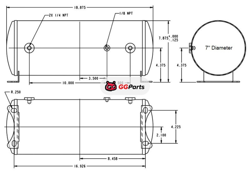 Ridetech Air Tank 3 Gallon Aluminum w/ 2- 1/4in Ports and 1- 1/8in Port