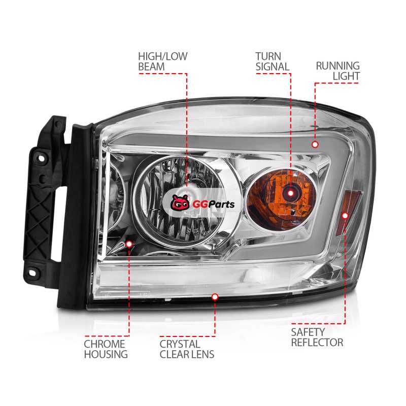 Anzo 06-09 Dodge RAM 1500/2500/3500 Headlights Chrome Housing/Clear Lens (w/Switchback Light Bars)