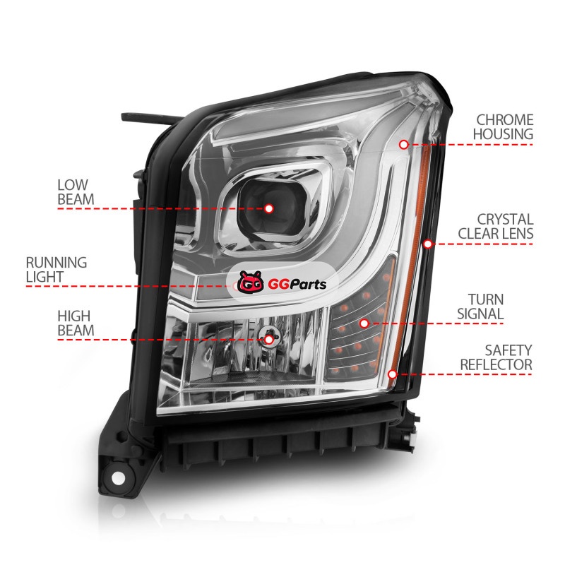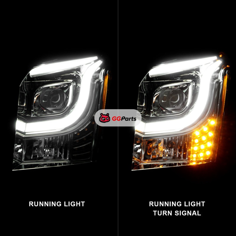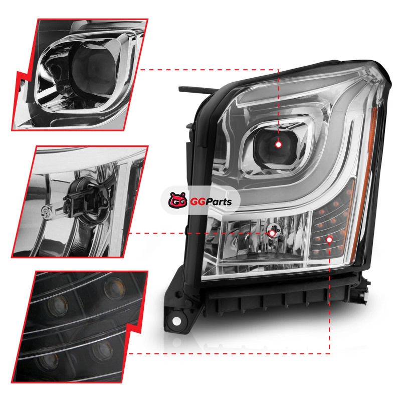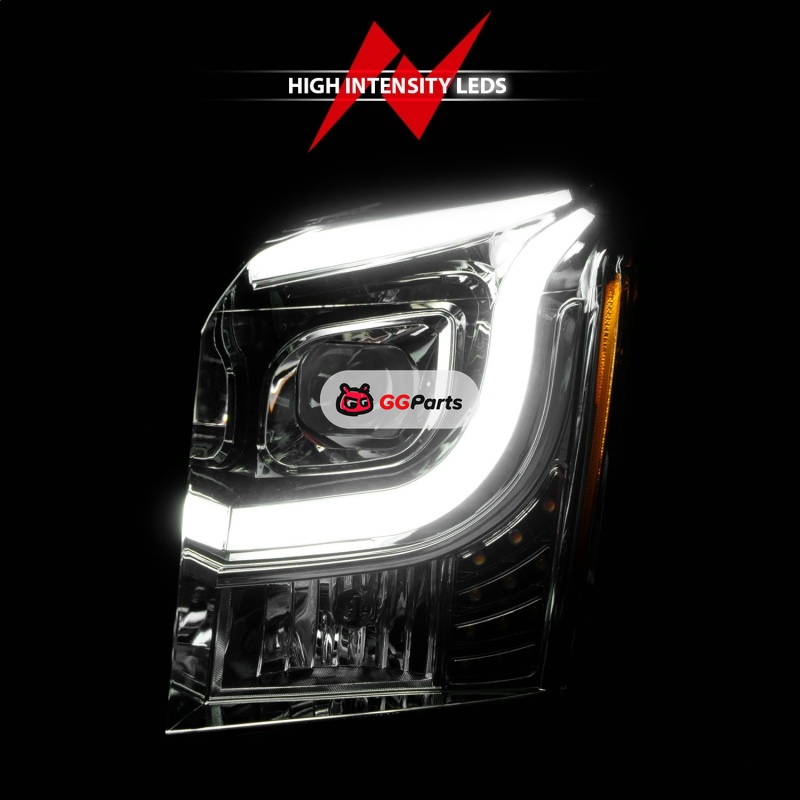 ANZO 2015-2017 GMC Yukon XL Projector Headlights W Lightbar - Chrome/Amber