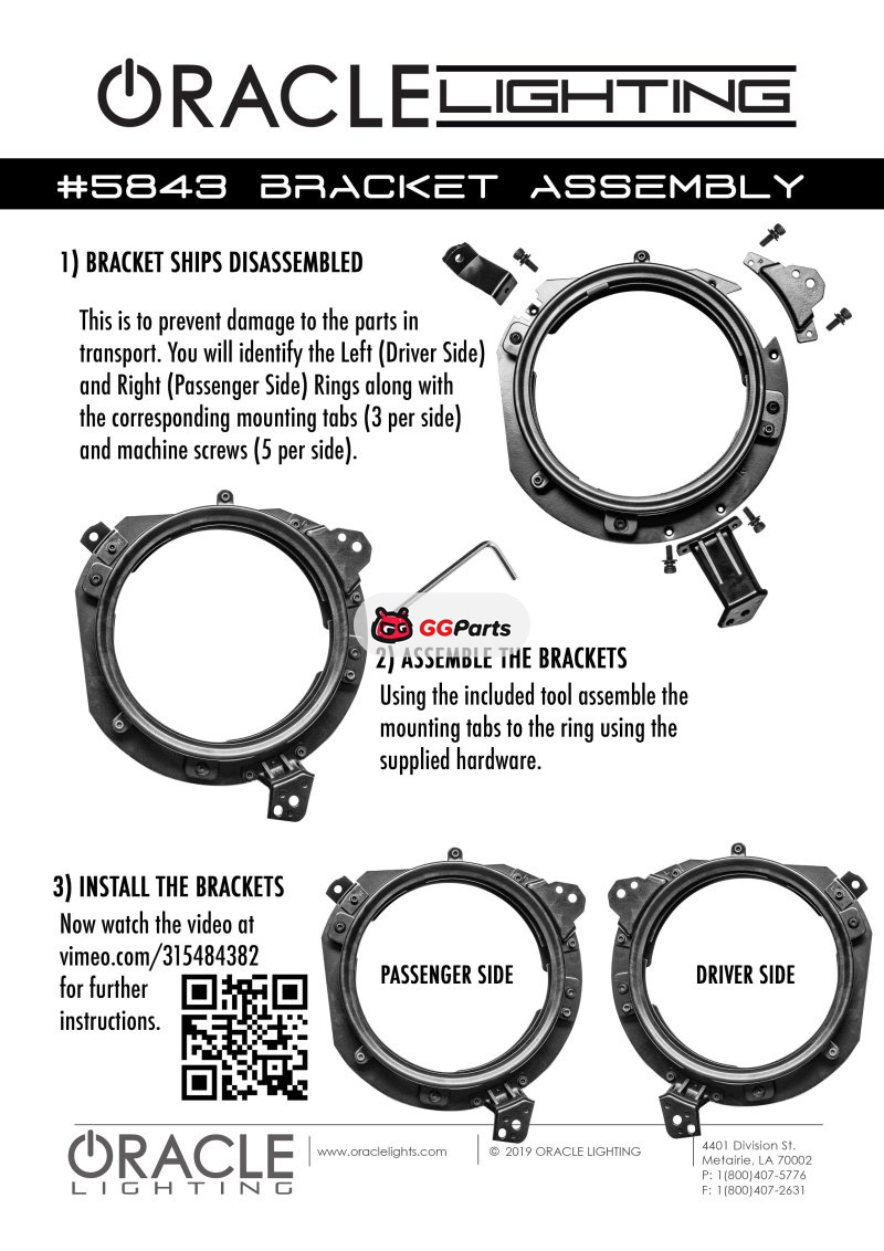 Oracle Jeep Wrangler JL/ Gladiator JT Adjustable 7in. Headlight Brackets (Pair) SEE WARRANTY