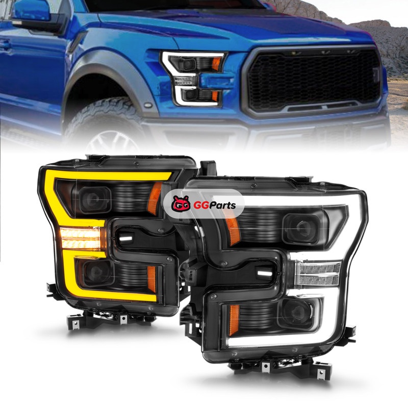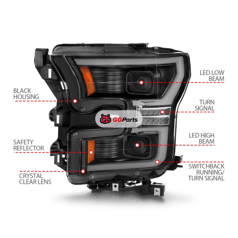 ANZO 15-17 Ford F-150 LED Projector Headlights - w/ Light Bar Switchback Black Housing