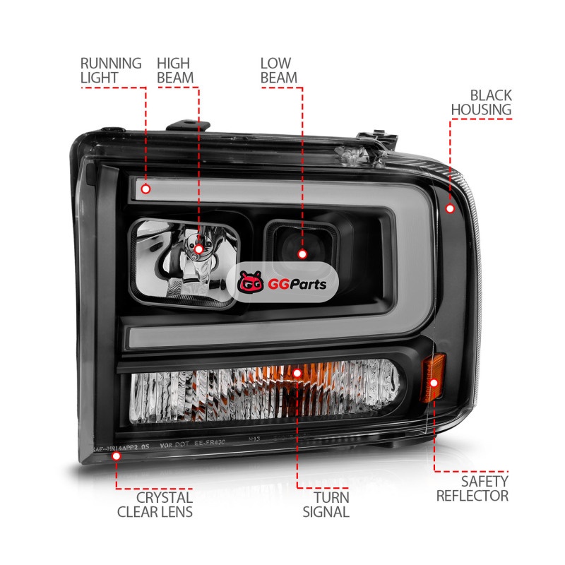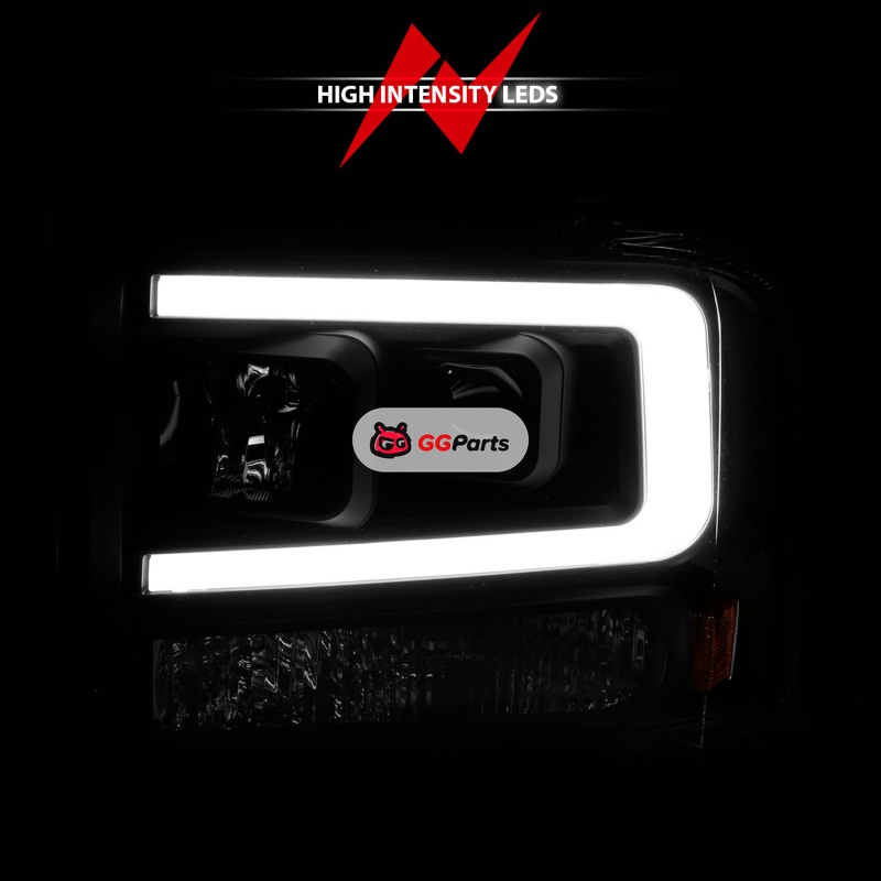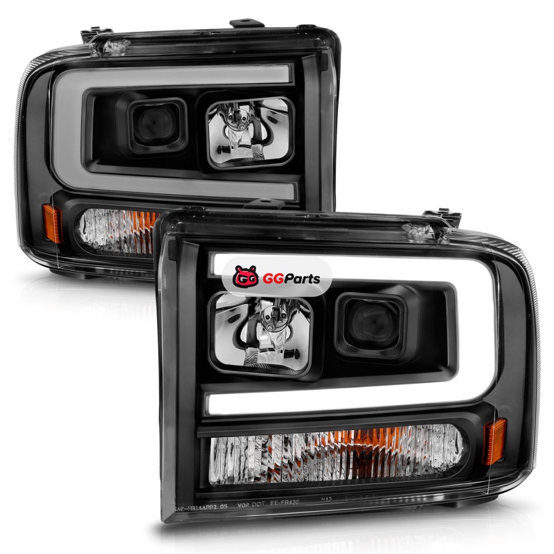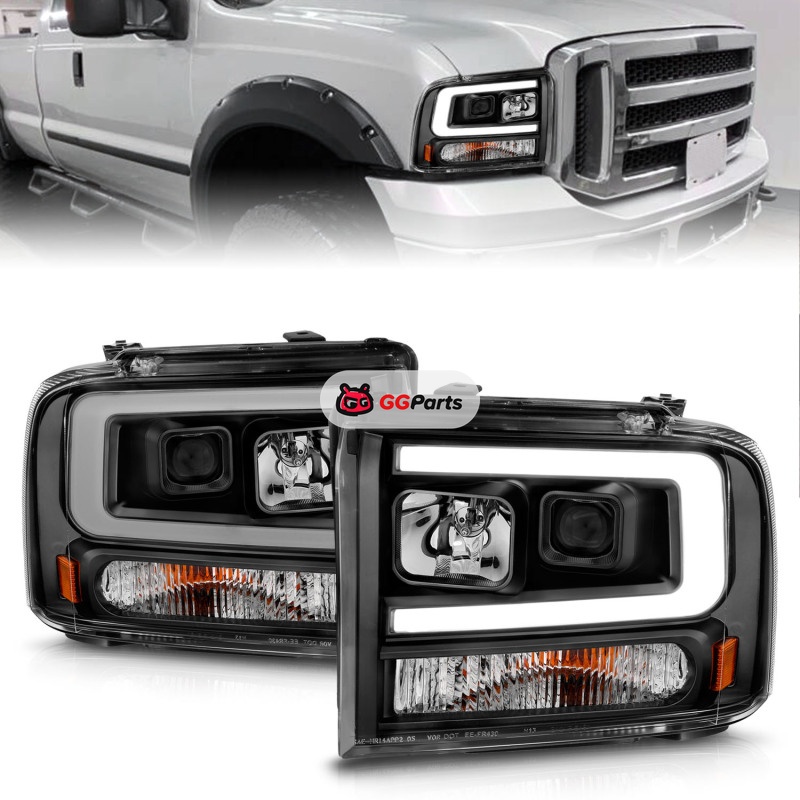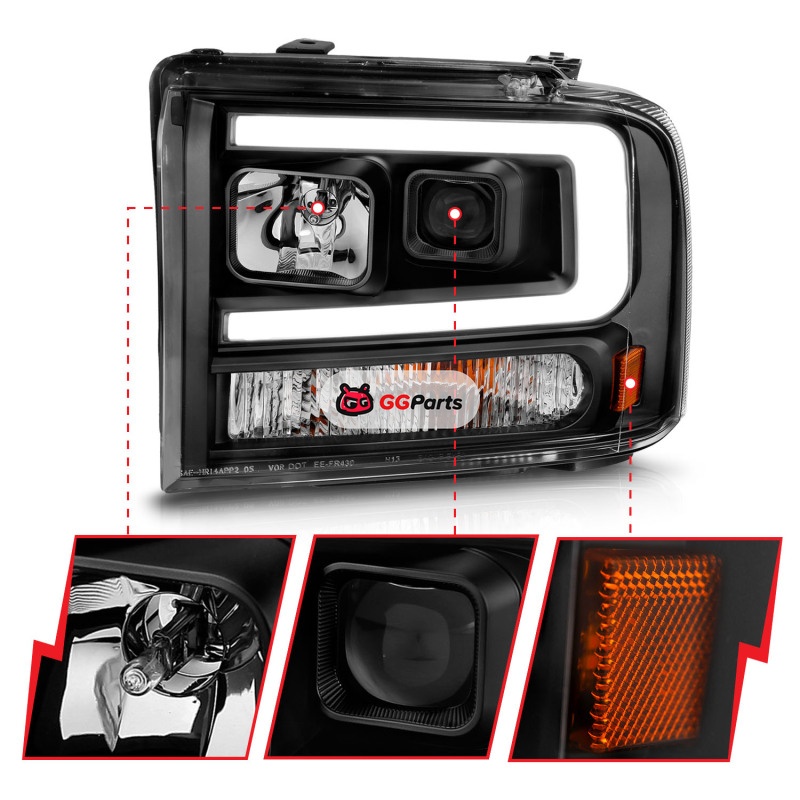 ANZO 99-04 Ford F250/F350/F450/Excursion (excl 99) Projector Headlights - w/ Light Bar Black Housing