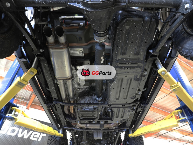 Выхлопная система имеет наконечник, загнутый вниз под автомобилем, перед задней осью, чтобы преодолевать неровности и препятствия на бездорожье.