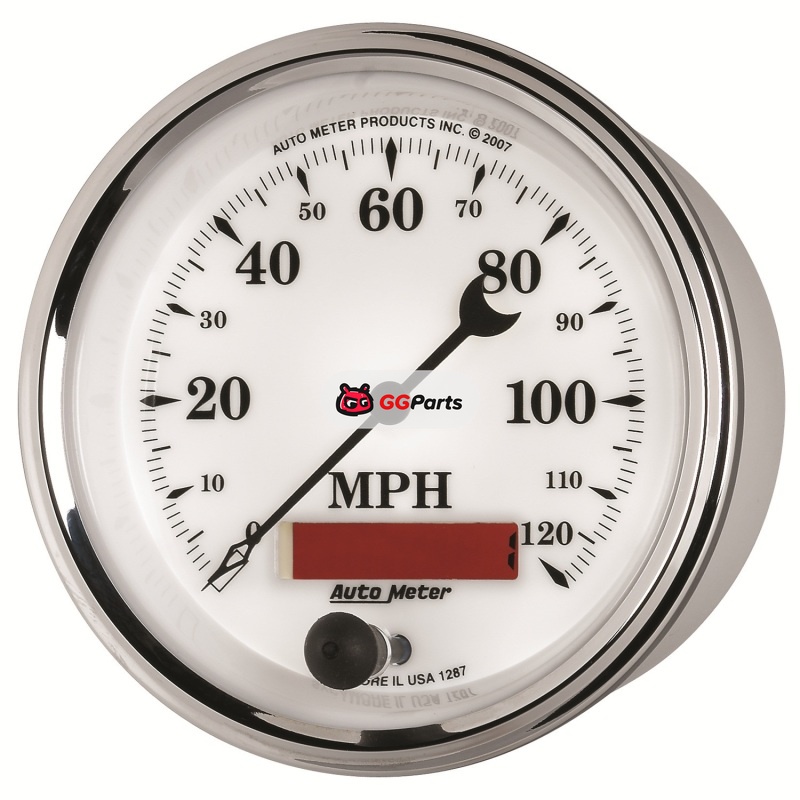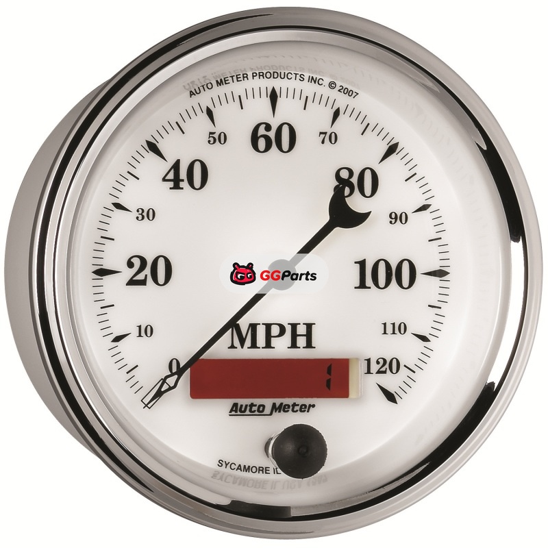 AutoMeter Gauge Speedometer 3-3/8in. 120MPH Elec. Prog. W/ Lcd Odo Old Tyme Wht II