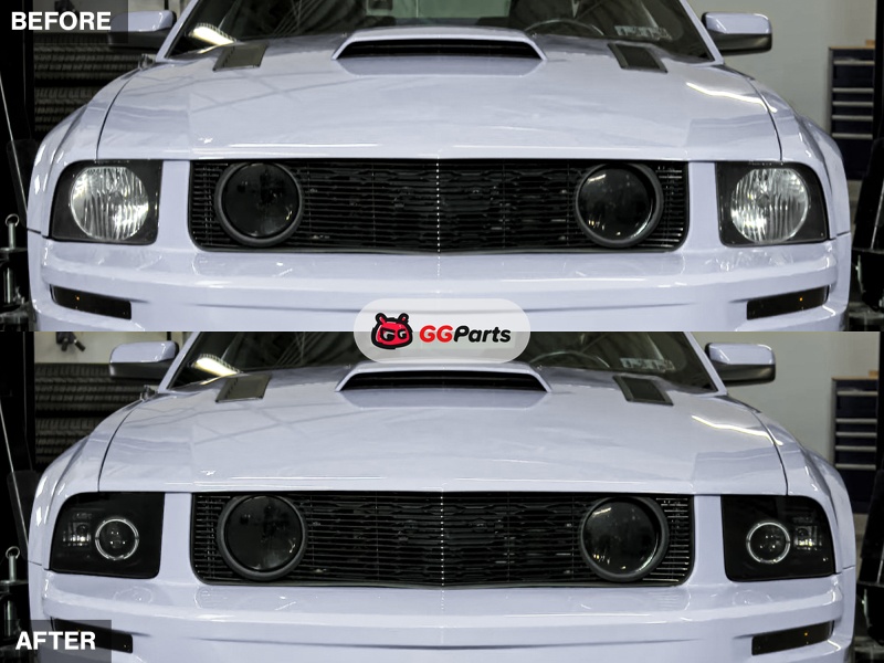 Raxiom 05-09 Ford Mustang Halogen 2010 Style LED Halo Headlights-Blk Hsng(Clear Lens/Excludes GT500)