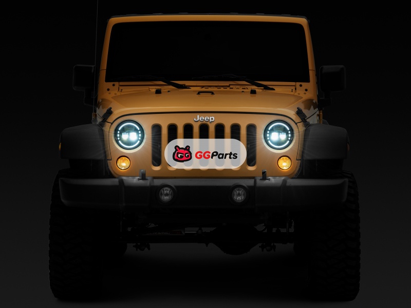 Raxiom 97-18 Jeep Wrangler TJ/JK Axial 7-Inch LED Headlights w/ DRL- Black Housing (Clear Lens)
