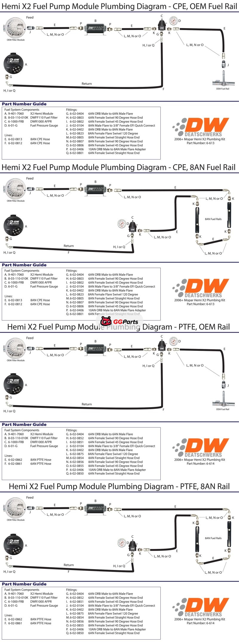 DeatschWerks 2006+ Hemi X2 Series Pump Module -8AN Feed w/ -6AN Return PTFE Plumbing Kit
