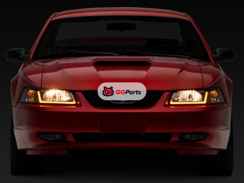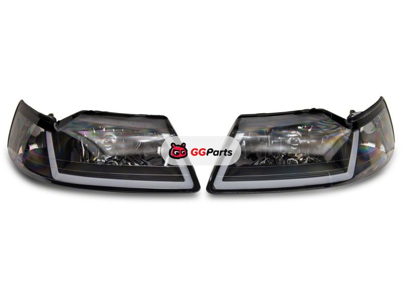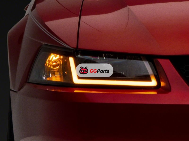 Raxiom 99-04 Ford Mustang Axial Series Headlights w/ Sequential LED Bar- Blk Housing (Clear Lens)
