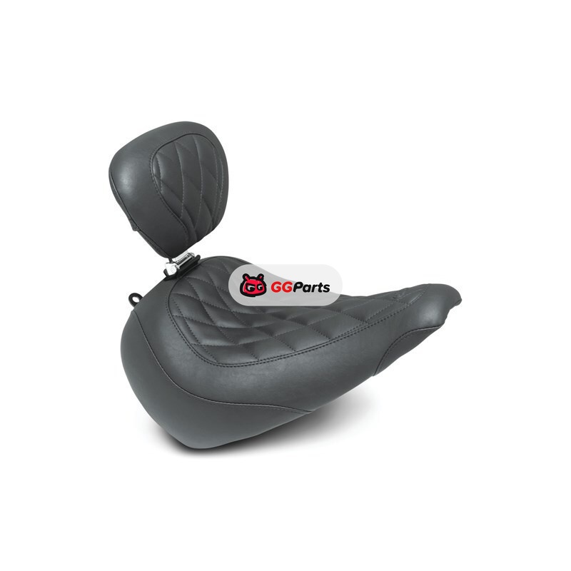 Mustang 18-21 Harley Fat Boy Wide Tripper Solo Seat w/Driver Backrest Diamond Stitch - Black