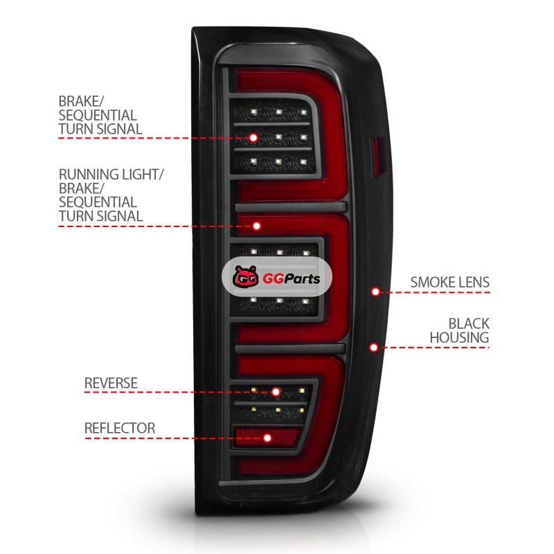 Anzo 19-23 GMC Sierra 1500/2500HD/3500HD Smoke Black Replacement Full LED Bar Tail Light