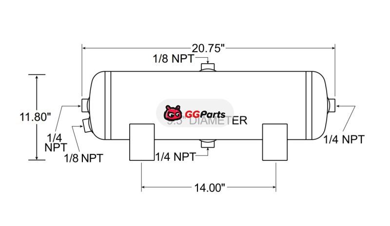 Firestone Air Tank 5 Gallon 9.5in. x 20.75in. (4) 1/4in. NPT Ports 150 PSI - Black (WR17609246)