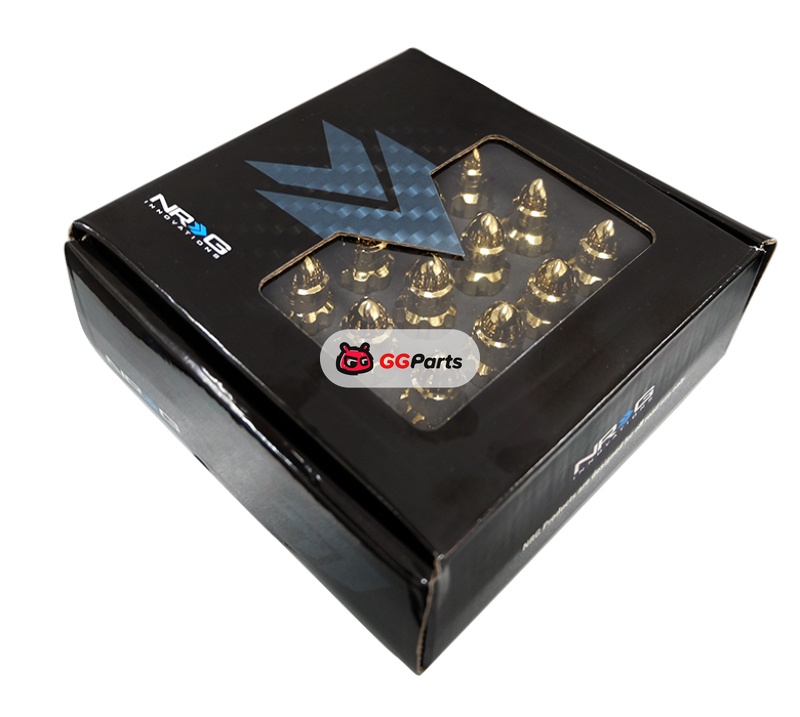 NRG 500 Series M12 X 1.5 Bullet Shape Steel Lug Nut Set - 21 Pc w/Lock Key - Chrome Gold