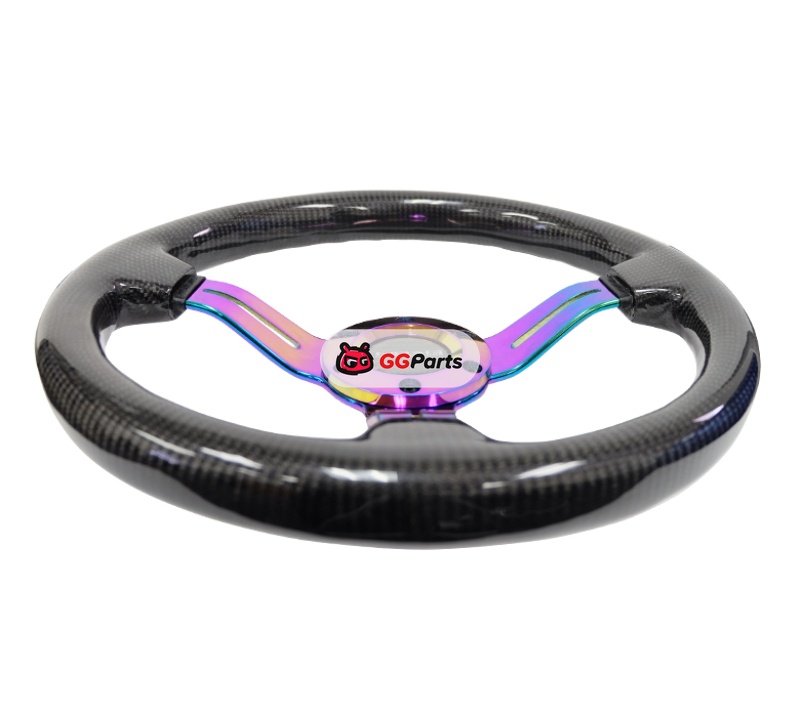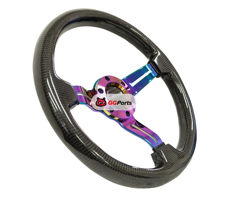 NRG Carbon Fiber Steering Wheel (350mm / 1.5in. Deep) Neochrome 3-Spoke Design w/Slit Cuts