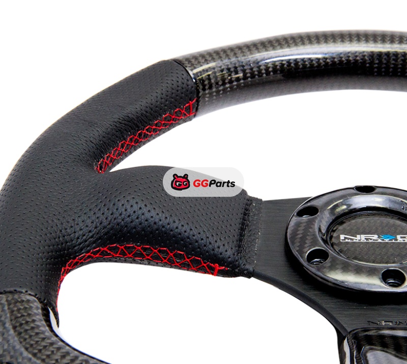 NRG Carbon Fiber Steering Wheel (320mm) Flat Bottom & Leather Trim w/Red Stitching
