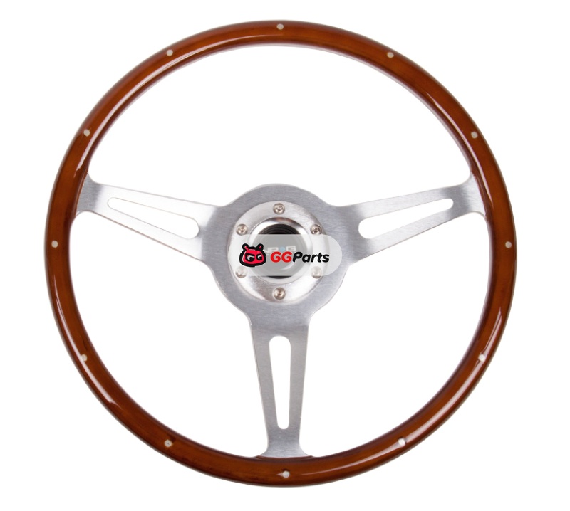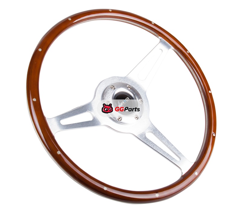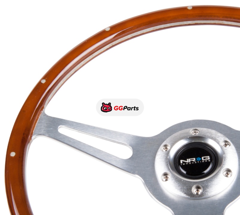 NRG Classic Wood Grain Steering Wheel (365mm) Wood w/Metal Inserts & Brushed Alum. 3-Spoke Center