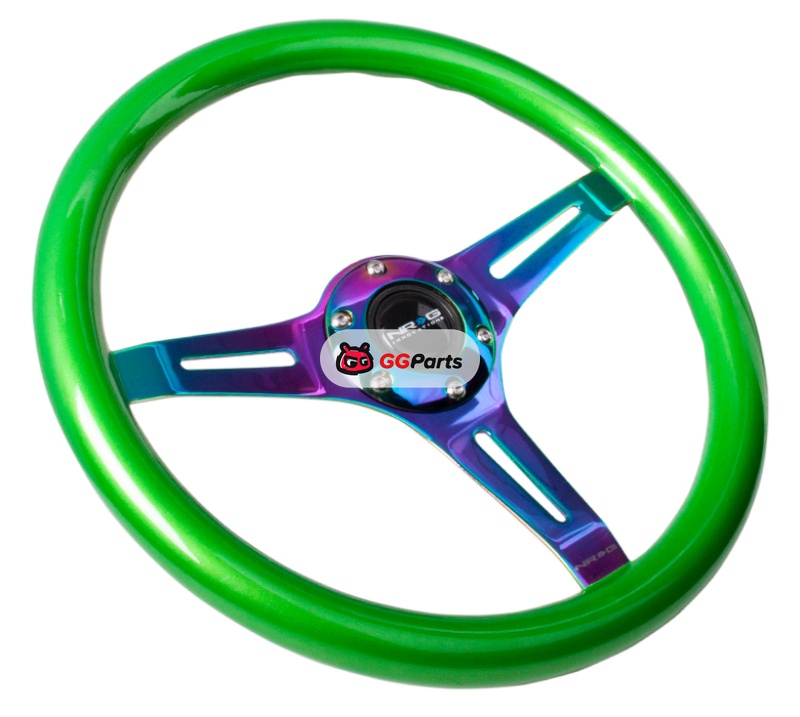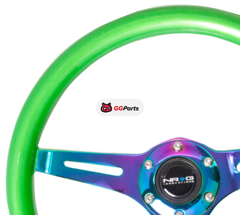 NRG Classic Wood Grain Steering Wheel (350mm) Green Pearl/Flake Paint w/Neochrome 3-Spoke Center