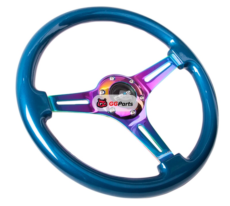 NRG Classic Wood Grain Steering Wheel (350mm) Blue Pearl/Flake Paint w/Neochrome 3-Spoke Center