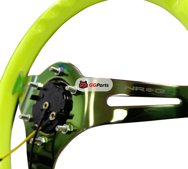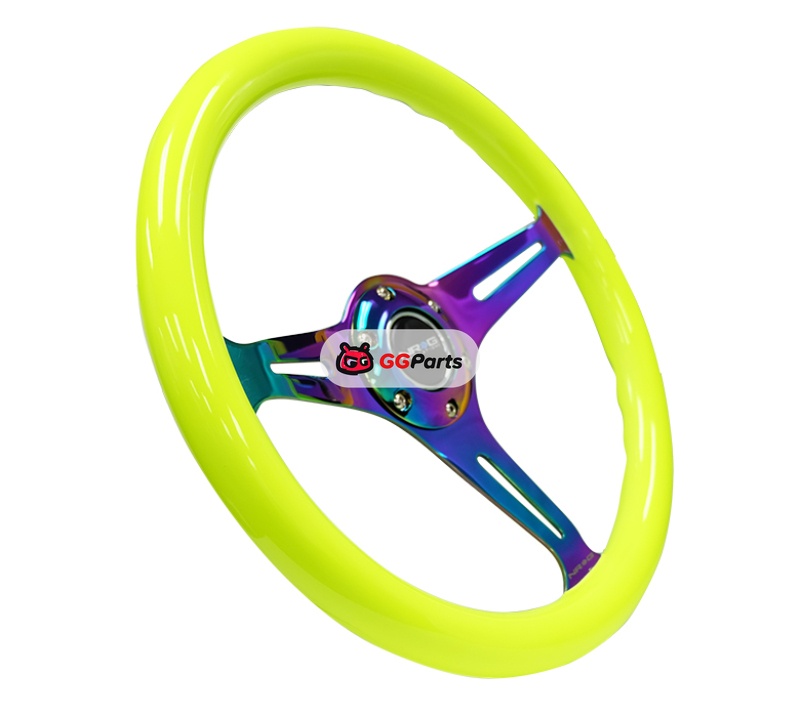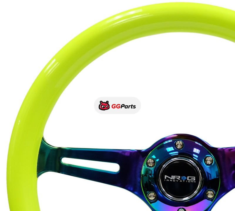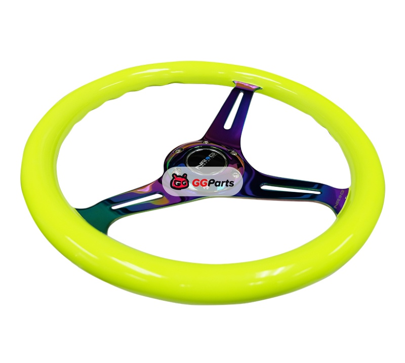 NRG Classic Wood Grain Steering Wheel (350mm) Neon Yellow Color w/Neochrome Spokes